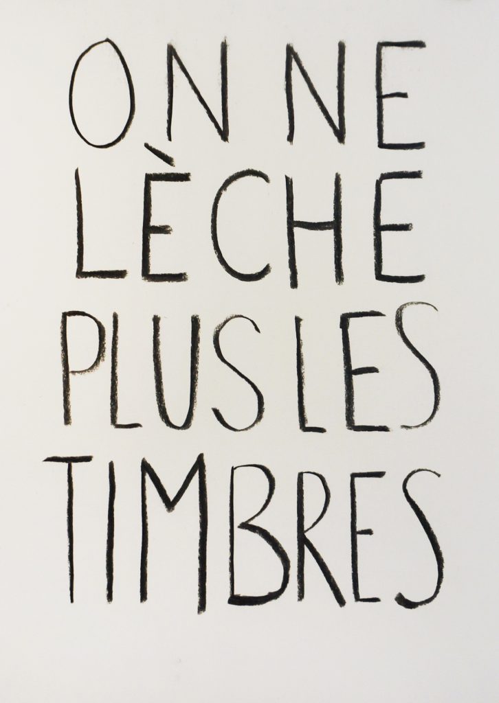 J’aurai voulu t’écrire une lettre baveuse avec des tâches d’encre et des jeux de mots pourris, des coquilles à chaque ligne et ma salive en gage. Mais tout ça tombe à plat. Je ne peux plus le faire. C’est comme ça. C’est la vie comme on dit. Sais-tu que malgré ma tête dure et mes ongles longs, ils m’ont volé ma plume ? Je leur aurais sans doute prêté à cette bande d’idiots si seulement ils m’avaient demandé. Mais ils ne m’ont rien demandé et ils se sont servis. J’en suis malade ! La vérité, ma chère amie, est parfois dure à gober. Tu sais moi qui aimais chanter à tue-tête à chaque lever de soleil, tu te souviens, même que tu disais que mon chant était puissant parce que je n’avais pas dormi, et bien maintenant je me couche tôt. Je roule mon corps sur le côté, en boule. J’ai tout le temps la chair de poule. Et puis je perds mes dents. Je dois couver quelque chose, c’est sûr. Lorsque je suis triste je repense à hier, quand à défaut de mouchoir je me servais de feuille. Je trempais ma passion dans le jaune du soleil comme on fait des mouillettes sur le bord de l’assiette. Il ne se passe plus rien, comprends-tu ? Ils m’ont coupé les jambes au niveau des cuisses. Je me suis abîmé les pouces à gratter leur merdique terre. Que vont-il me pondre demain ? Je crains le pire, tu sais ? Mon esprit n’est pas frais. Heureux celui qui bouillonne ! Heureuse celle qui brise sa coque ! Je t’envoie mes empreintes d’une fenêtre droite de laquelle ne s »imprime plus rien. Reste libre mon amie. Garde ta langue bien pendue. Tiens-toi sur tes garde et prends des forces car il est temps que le monde sache qu’on ne lèche plus les timbres.